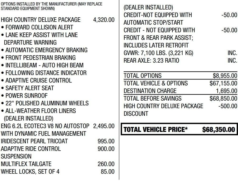 - High Country Preferred Equipment Group includes standard equipment