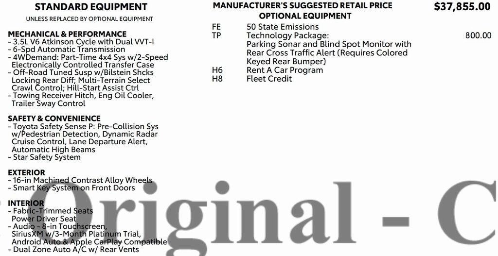 - Vehicle Name: Toyota Tacoma 4WD