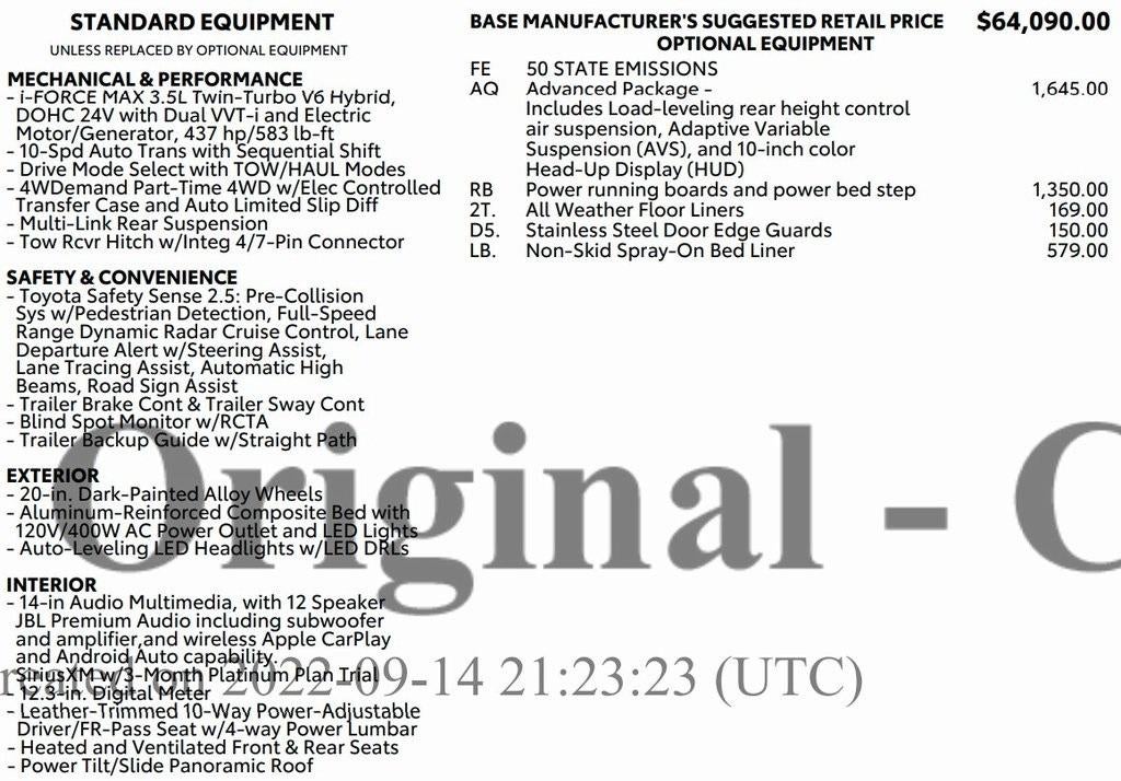 2022 Toyota Tundra Hybrid Platinum