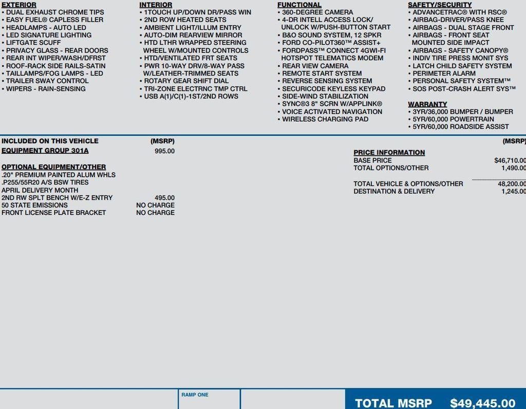 - SYNC 3 Communications & Entertainment System -inc: enhanced voice recognition, 8" LCD capacitive touchscreen in center stack w/swipe capability, AppLink, 911 Assist, Apple Car Play and Android Auto compatibility and 1 smart-charging multimedia USB port in the media hub